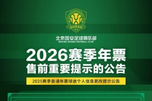 尊敬的球迷朋友,大家好!俱樂(lè)部將于春節(jié)假期后啟動(dòng)2026賽季年票發(fā)售工作。為了方便2025賽季已購(gòu)年票球迷進(jìn)行原座位續(xù)購(gòu)或優(yōu)先選座,請(qǐng)仔細(xì)閱讀圖片中的重要提示內(nèi)容