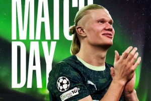 曼城官方社媒曬出為此役制作的海報(bào),哈蘭德出鏡,背景為北極光下的阿斯普米拉體育場。