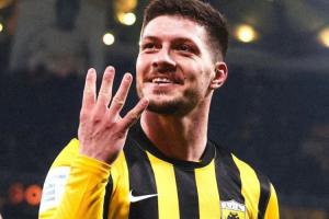 本賽季約維奇代表雅典AEK出戰(zhàn)27場(chǎng)比賽,貢獻(xiàn)15粒進(jìn)球和1次助攻,排名聯(lián)賽射手榜第2。