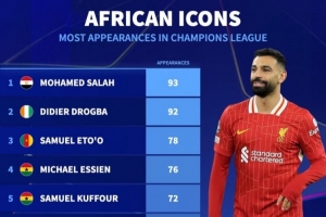 體育資訊1月20日訊 歐冠即將戰(zhàn)火重燃,參加了非洲杯的薩拉赫已經(jīng)歸隊(duì)訓(xùn)練,他能否出戰(zhàn)本場(chǎng)比賽值得關(guān)注。數(shù)據(jù)統(tǒng)計(jì)顯示,薩拉赫已經(jīng)是歐冠賽事非洲球員出場(chǎng)王。